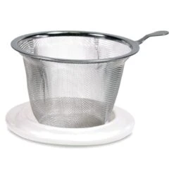 Matière : tasse et couvercle en porcelaine, infuseur en acier inoxydable.