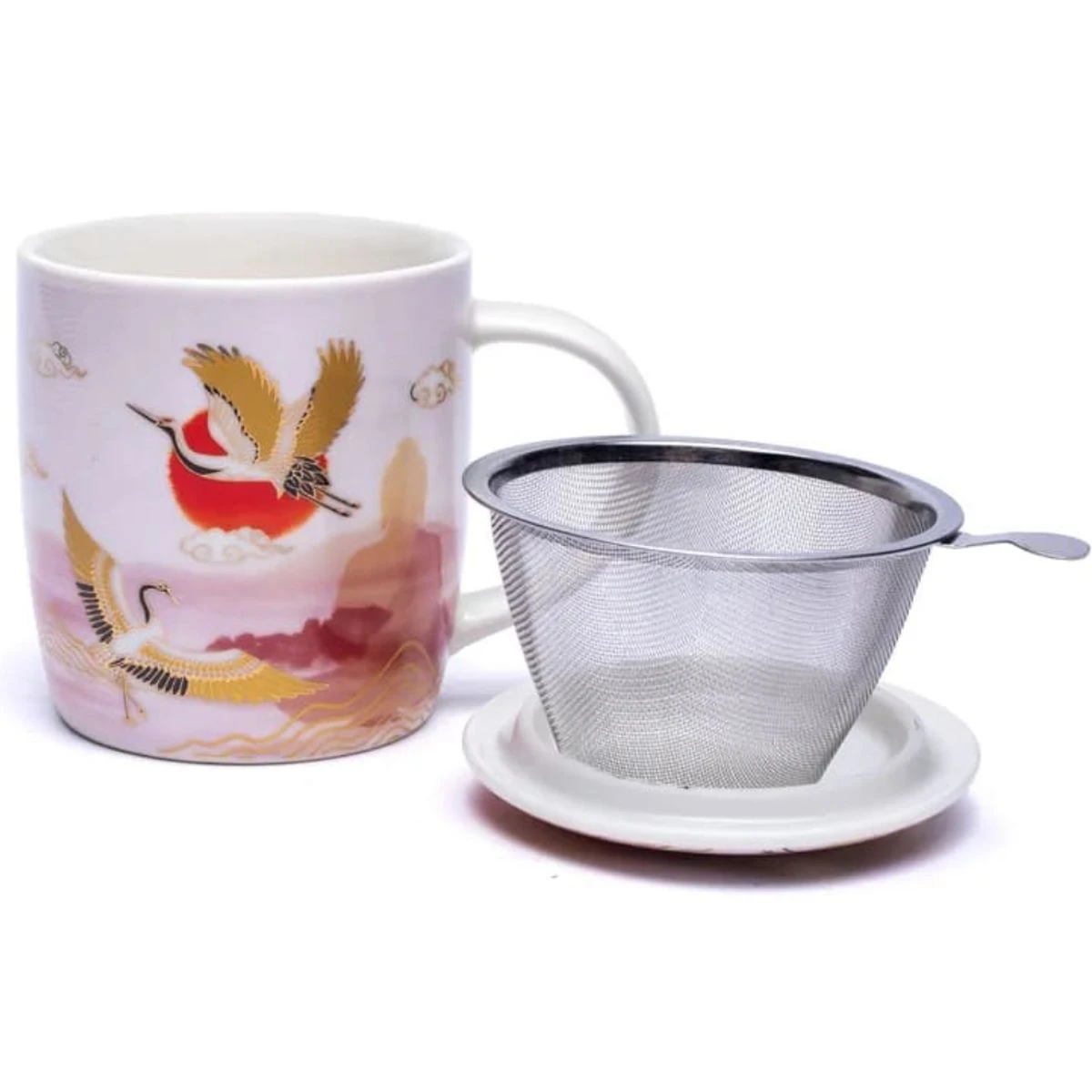 Matière : tasse et couvercle en porcelaine, infuseur en acier inoxydable.