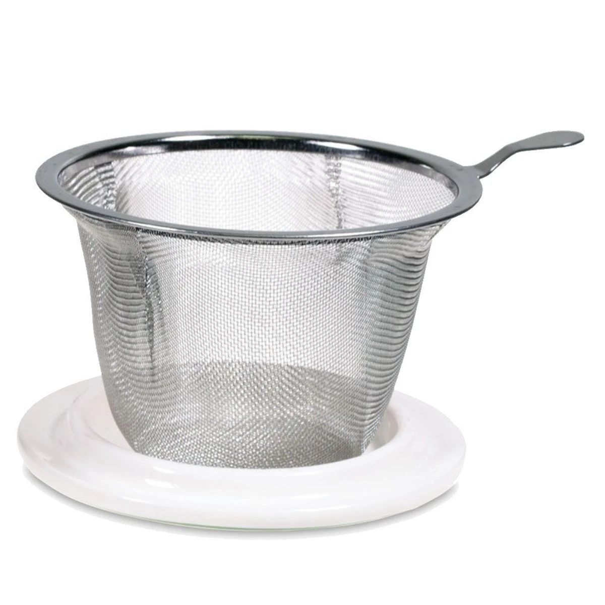 Matière : tasse et couvercle en porcelaine, infuseur en acier inoxydable.