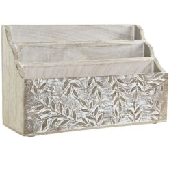 Ce très bel organisateur de bureau, 3 compartiments, en bois patiné de motifs floraux, donnera une merveilleuse touche exotique à votre espace de travail.
